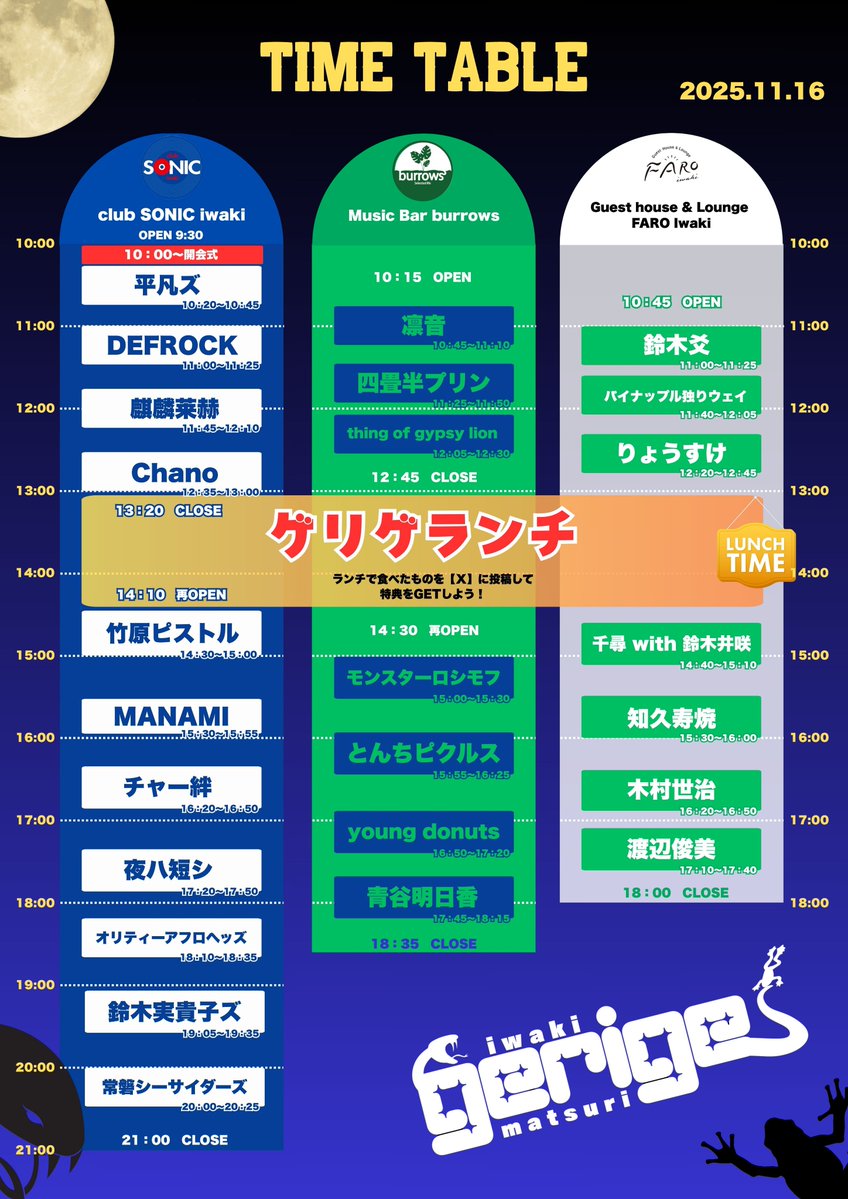 【会場】club SONIC iwaki / Music Bar burrows / Guest house & Lounge FARO Iwaki